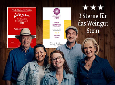 In den beiden großen deutschen Weinguides, Eichelmann und Vinum, hat unser kleines Weingut Stein 3 Sterne erhalten und zählt somit zu den „sehr guten Weingütern" in Deutschland. Die Bewertungen und Beschreibungen unserer Weine dazu sind toll! Vielen Dank! Wir möchten deshalb ein "Probierpaket 3 Sterne" anbieten!